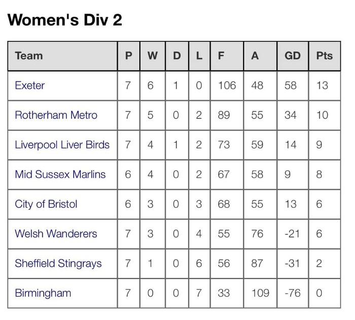 Exeter ran out 20-2 victors vs a Welsh Wanderers side unfortunately depleted due to a fixture clash. A dominant display at both ends of the pool and excellent scoring performances from Amy Potter (5) and Jasmine Coleman (6) made the final game of our phase 1 campaign comfortable.
