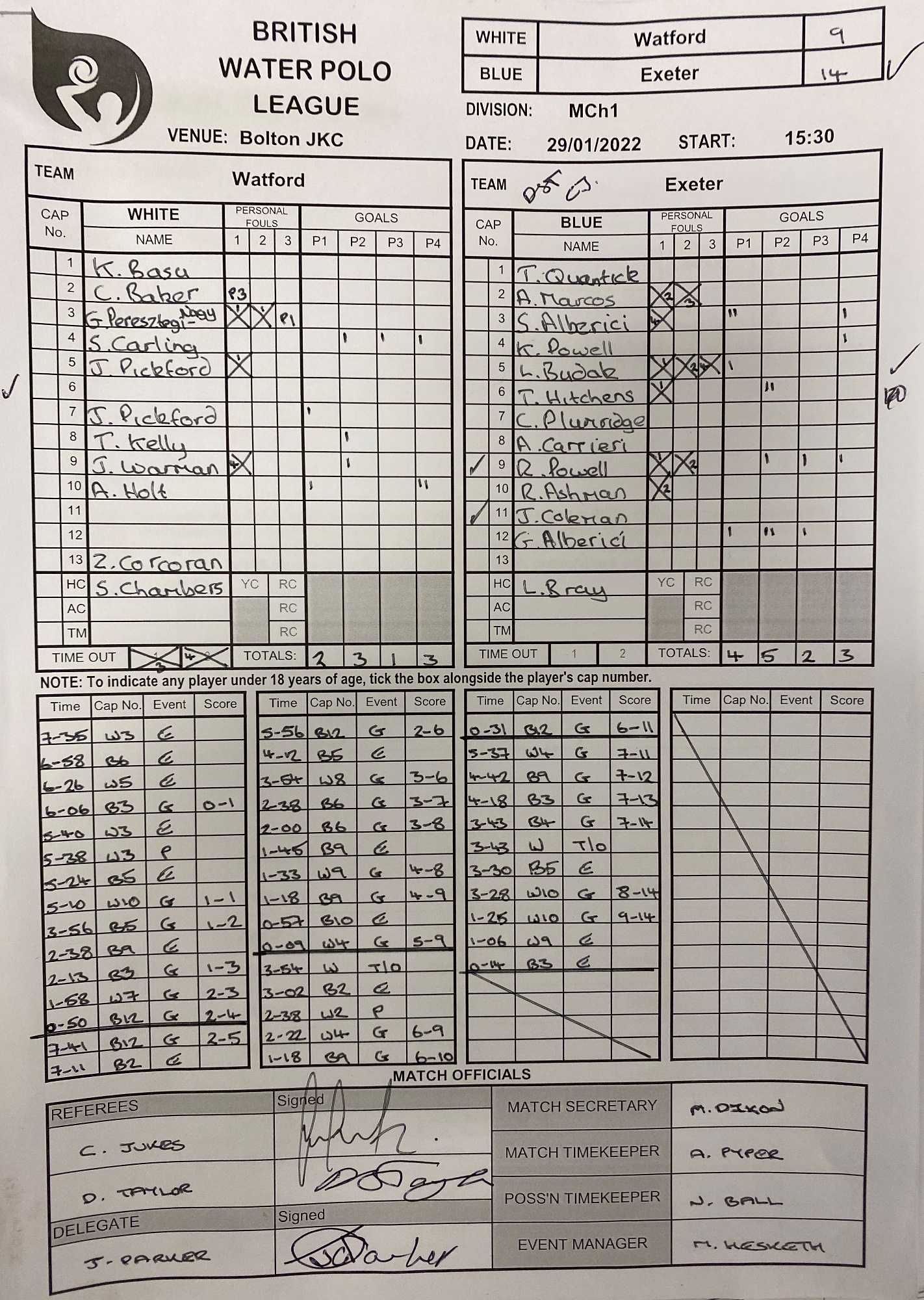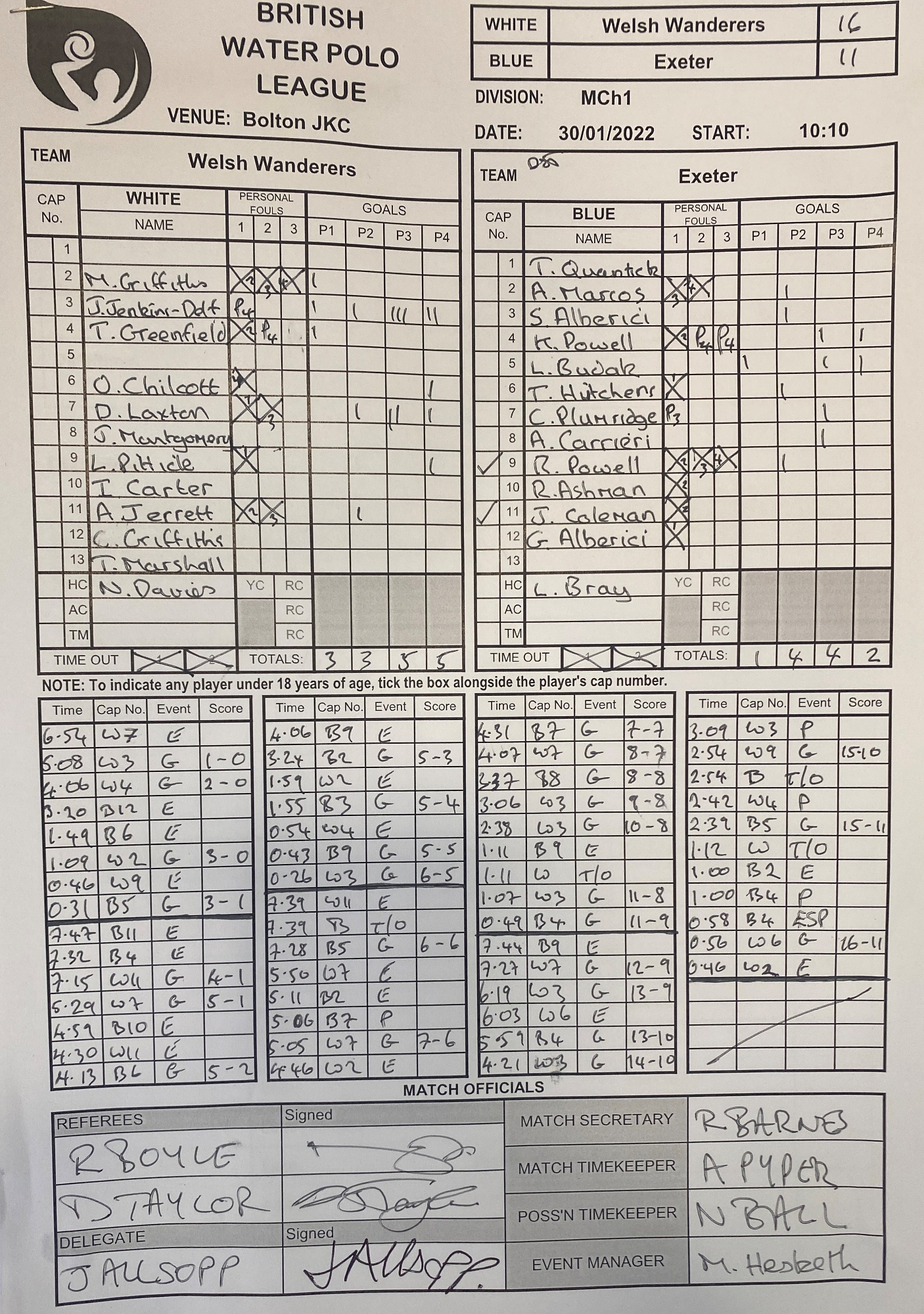 BWPL CHAMPIONSHIP 1 - Men's Result - vs Watford & Welsh Wanderers