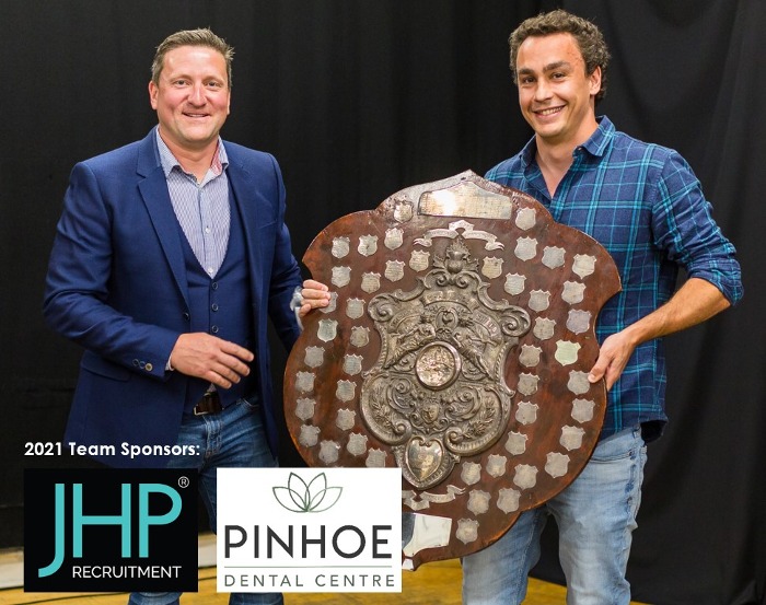 Senior Men 2021 Devon League winners - receiving the League shield is Senior Captain Alejandro Marcos