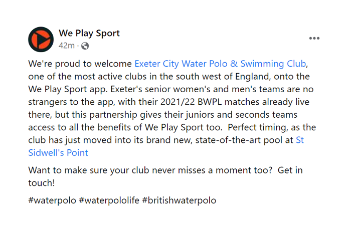 We are incredibly proud to be one of the first water polo clubs in the UK to be invited to use WePlay.sport.