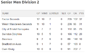 Good final win for the men's second team on Sunday away to Swansea to put them top of the table.